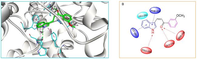 (E)-3-(1H-吲哚-3-基)-1-(4-甲氧基苯基)丙-2-烯-1-酮(1g): HPLC/Purity: 98.12% (tR=7.872 min), yield 91.08%. m.p. 173.1~174.3 ℃; 1H NMR (300 MHz, DMSO-d6) δ: 11.91 (s, 1H, NH), 8.46 (s, 1H, NCH=C for indol ring), 8.07 (d, J=15.0 Hz, 1H, COCH=CH), 7.72~8.18 (m, 4H, C6H4), 7.57 (d, J=15.0 Hz, 1H, COCH=CH), 7.09~7.52 (m, 4H, C6H4), 3.87 (s, 3H, OCH3); 13C NMR (75 MHz, DMSO-d6) δ: 187.71, 163.15, 138.61, 137.96, 133.24, 131.72, 130.89, 125.66, 123.12, 121.54, 120.82, 115.84, 114.37, 113.27, 112.90, 55.93, 55.76; HRMS calcd for C18H16NO2 [M+H]+ 278.1181, found 278.1186.