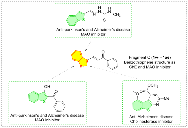 (E)-3-(苯并[b]噻吩-3-基)-1-(4-氟苯基)丙-2-烯-1-酮(1x): HPLC/Purity: 96.55% (tR=22.809 min), yield 69.39%. m.p. 120.4~120.5 ℃; 1H NMR (300 MHz, DMSO-d6) δ: 8.67 (s, 1H, SCH=C for thiophen ring), 8.06~8.30 (m, 4H, C6H4), 8.26 (d, J=15.0 Hz, 1H, COCH=CH), 7.50 (d, J=15.0 Hz, 1H, COCH=CH), 7.40~7.55 (m, 4H, C6H4); 13C NMR (75 MHz, DMSO-d6) δ: 188.15, 140.37, 137.52, 135.78, 132.04, 131.90, 131.35, 125.75, 125.66, 123.81, 122.67, 122.58, 116.47, 116.18; HRMS calcd for C17H11FNaOS [M+Na]+ 305.0412, found 305.0416.
