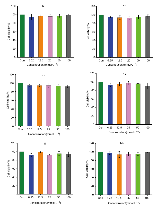 (E)-3-(1H-吲哚-3-基)-1-(间甲苯基)丙-2-烯-1-酮 (1a): HPLC/Purity: 99.56% (tR=8.020 min), yield 41.13%. m.p. 143.2~144.5 ℃; 1H NMR (300 MHz, DMSO-d6) δ: 11.92 (s, 1H, NH), 8.13 (s, 1H, NCH=C for indol ring), 8.06 (d, J=15.0 Hz, 1H, COCH=CH), 7.91~8.08 (m, 3H, C6H3), 7.61 (s, 1H, C6H1), 7.49 (d, J=15.0 Hz, 1H, COCH=CH), 7.22~7.55 (m, 4H, C6H4), 2.44 (s, 3H, CH3); 13C NMR (75 MHz, DMSO-d6) δ: 189.42, 139.36, 139.03, 138.51, 137.97, 133.62, 133.48, 129.04, 128.96, 125.86, 125.64, 123.17, 121.63, 120.82, 115.99, 113.24, 112.92, 21.46; HRMS calcd for C18H15NNaO [M+Na]+ 284.1051, found 284.1154.
