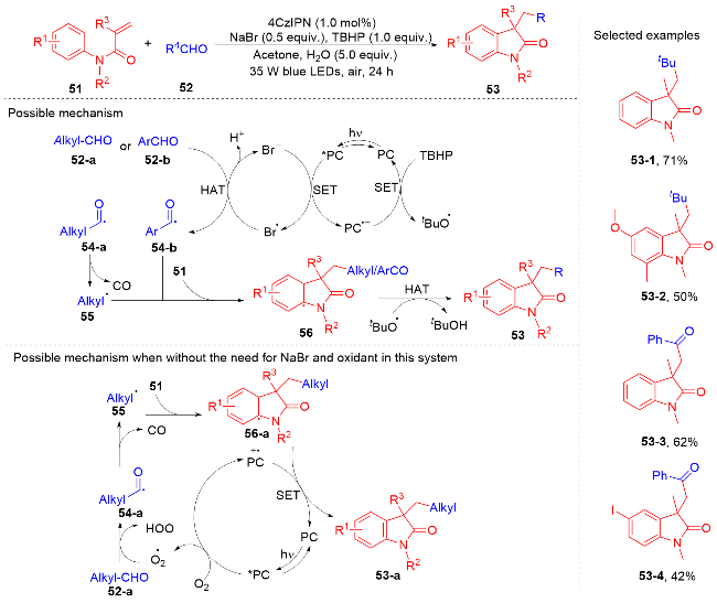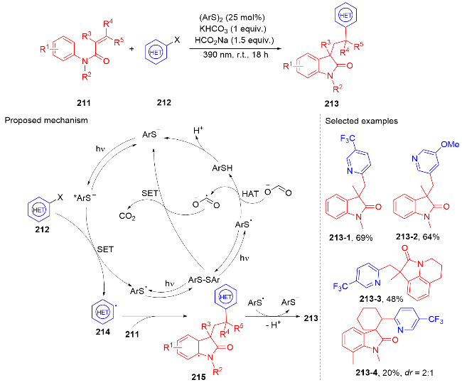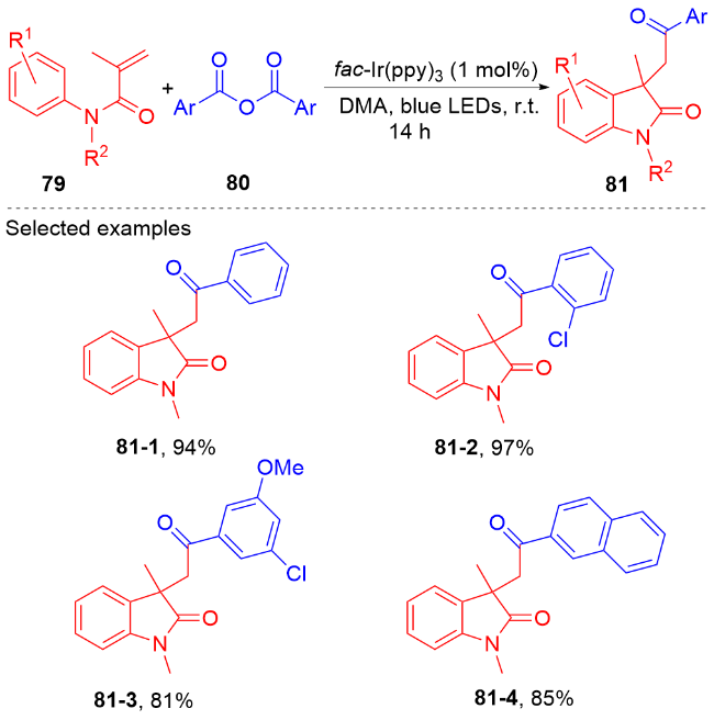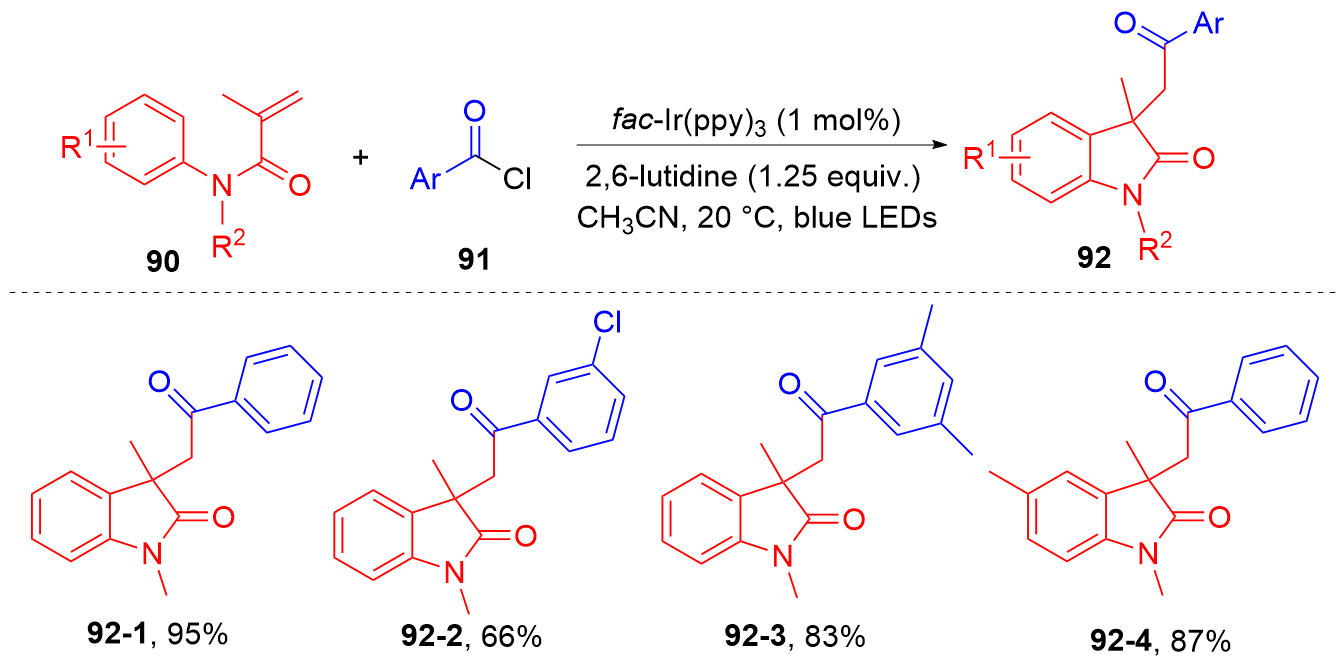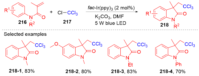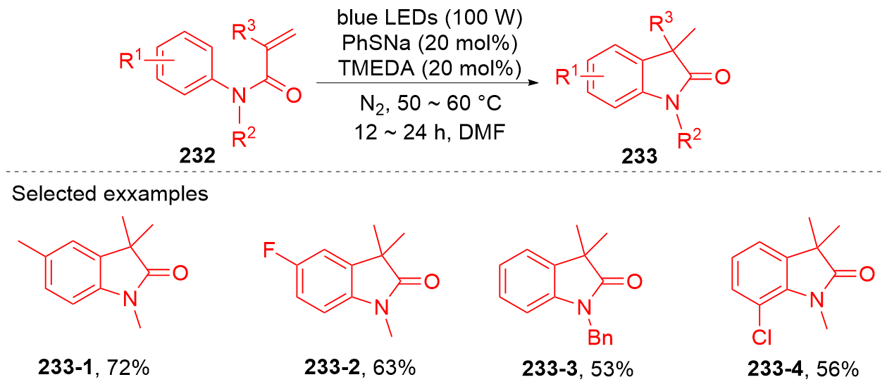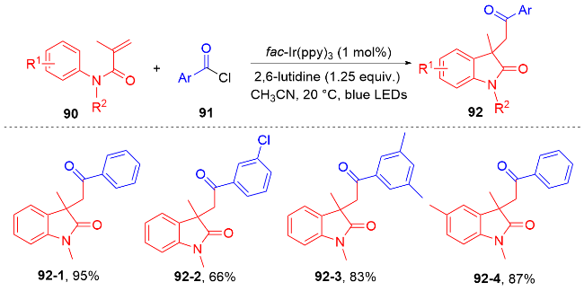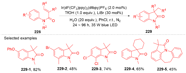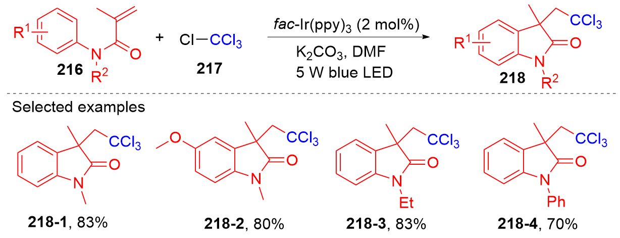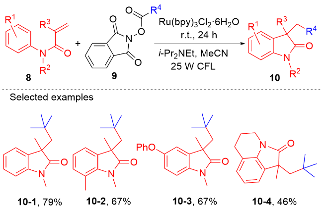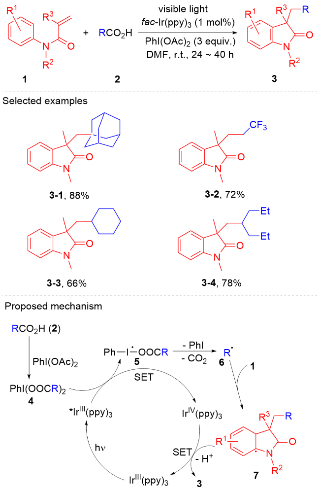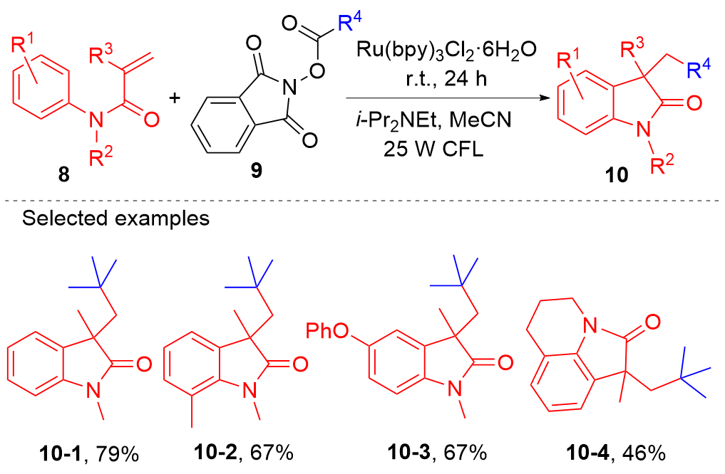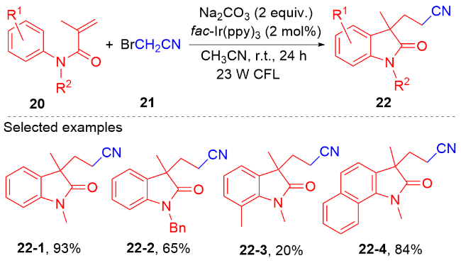 Key words: oxindole; N-arylacrylamide; radical reaction; photocatalysis