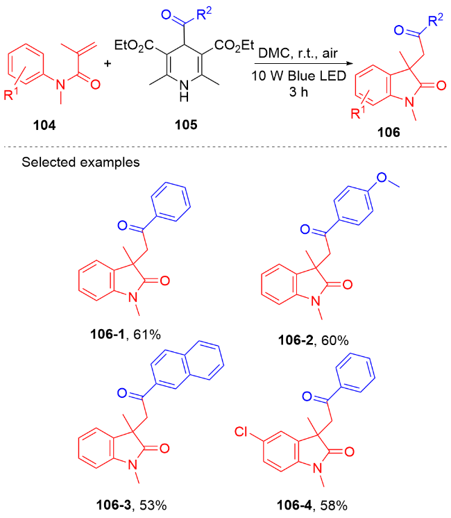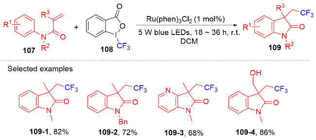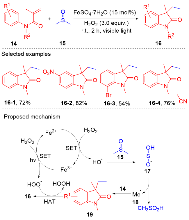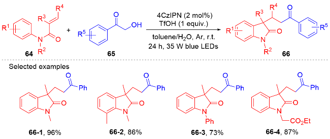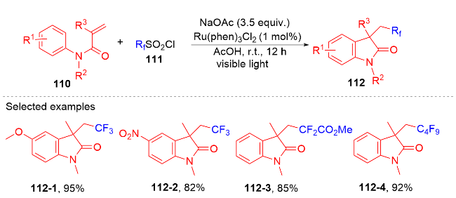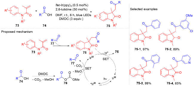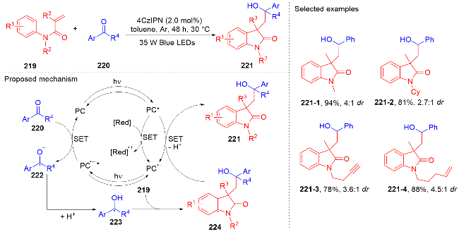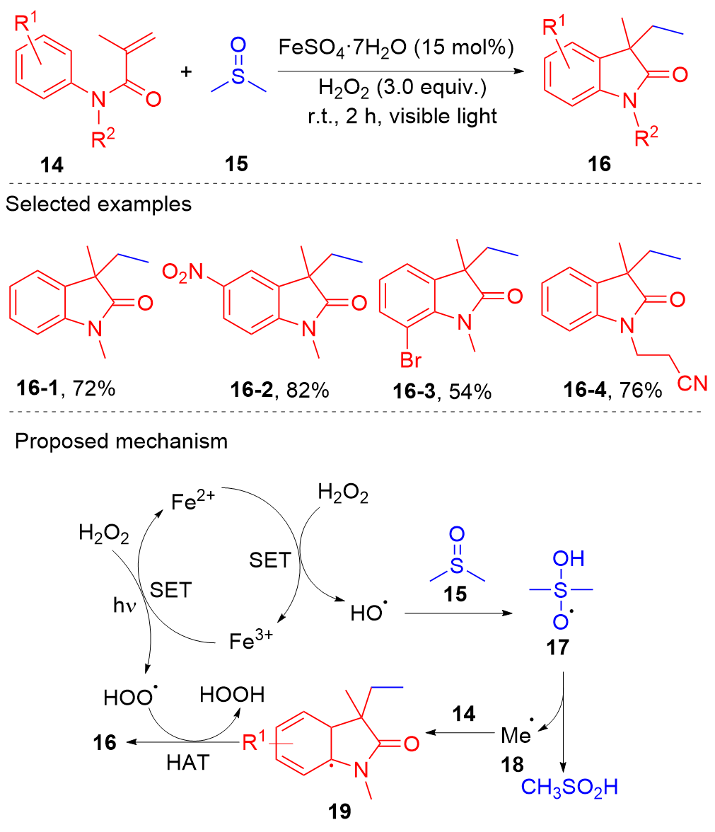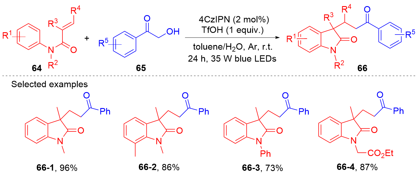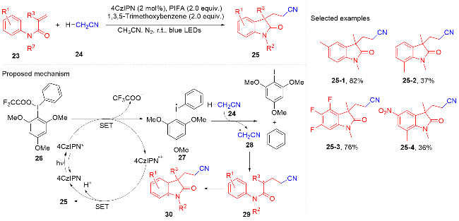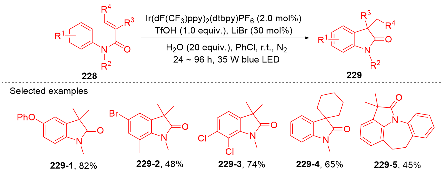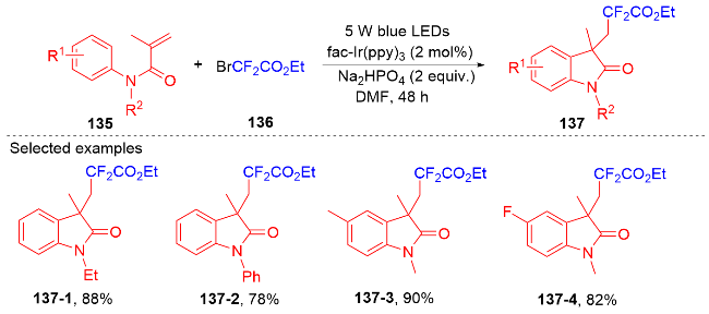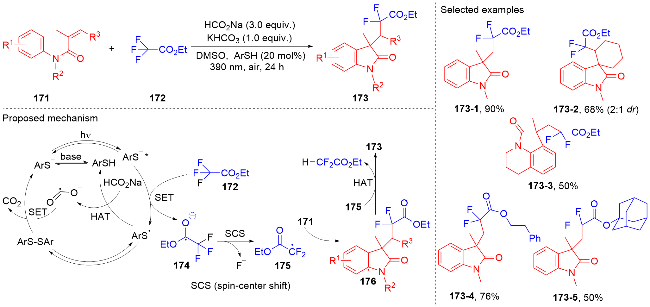 Key words: oxindole; N-arylacrylamide; radical reaction; photocatalysis