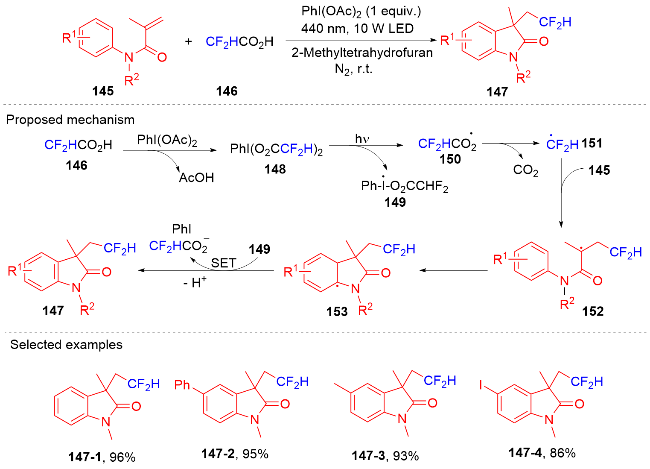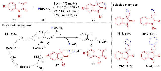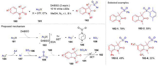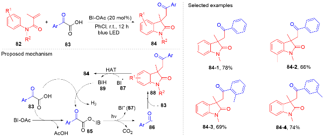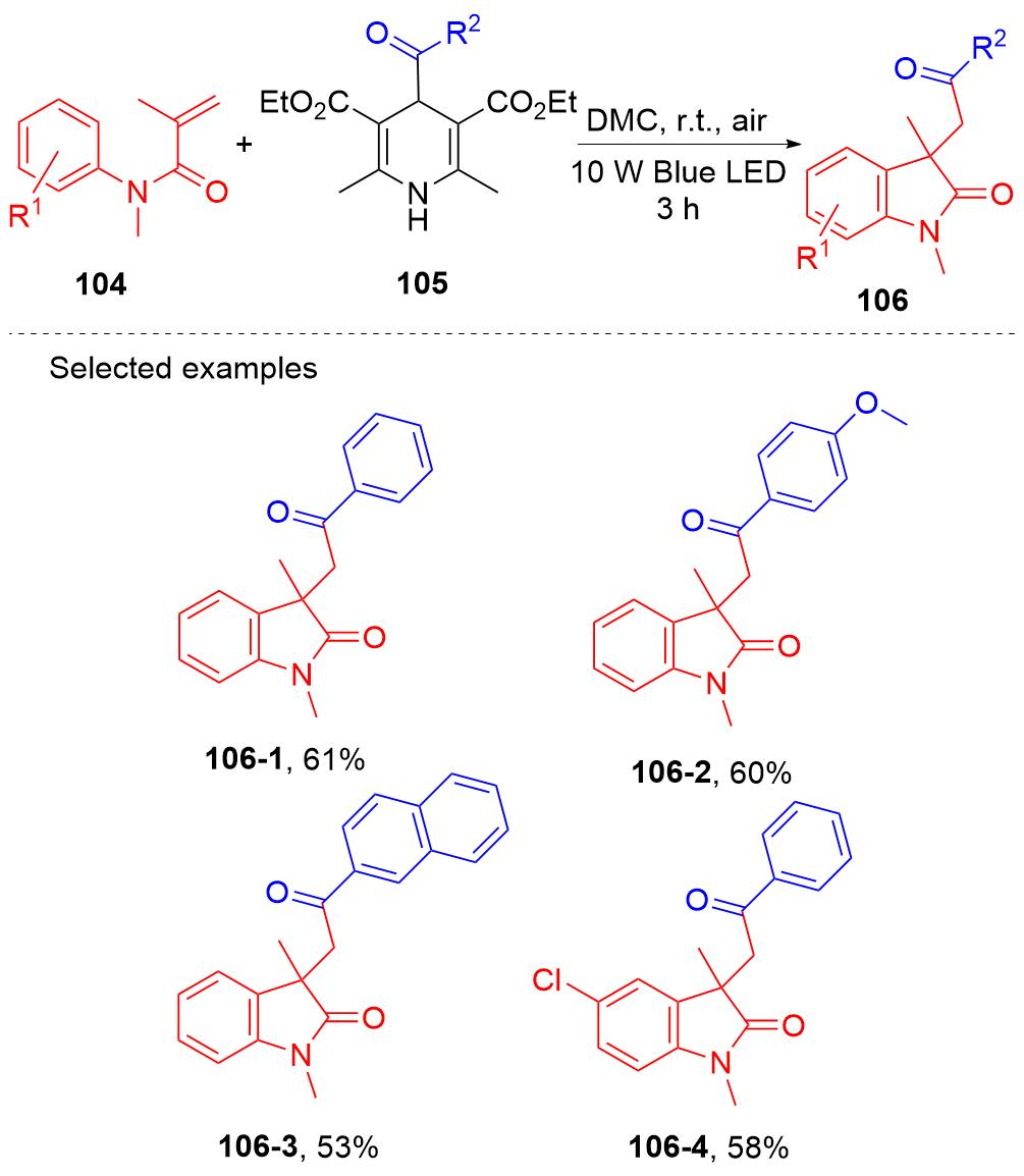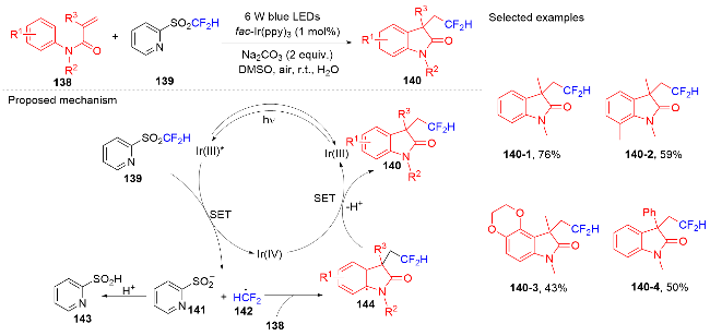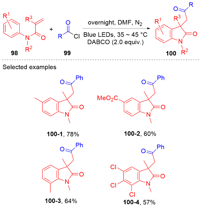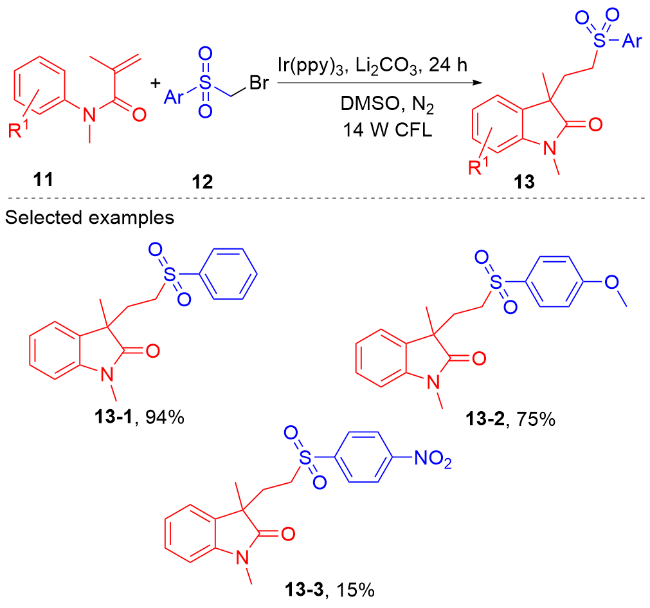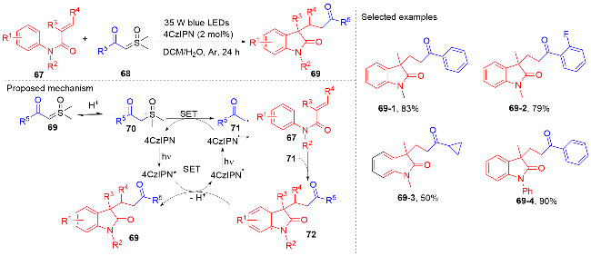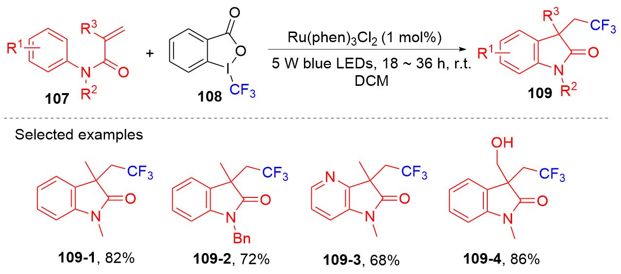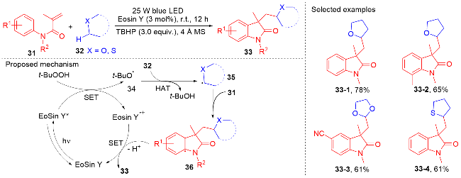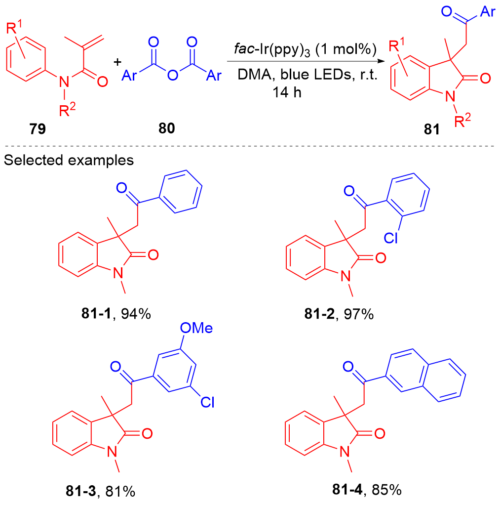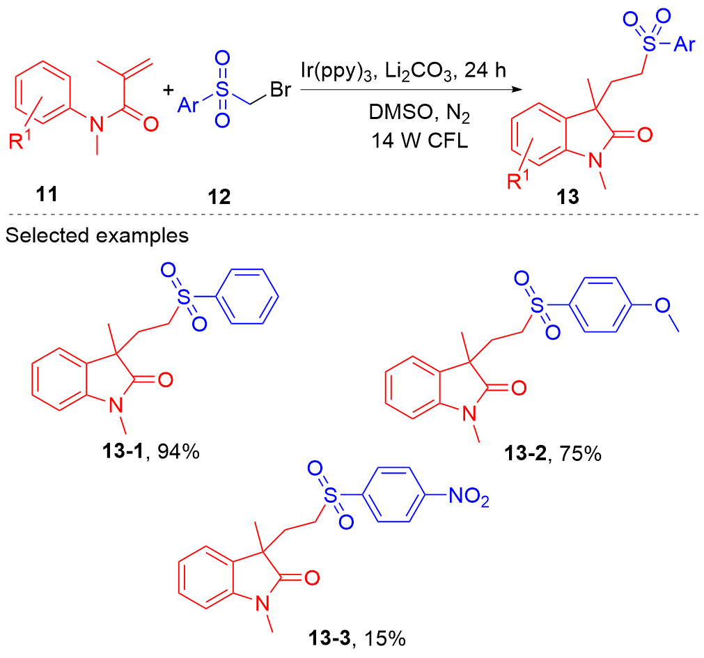 Key words: oxindole; N-arylacrylamide; radical reaction; photocatalysis
