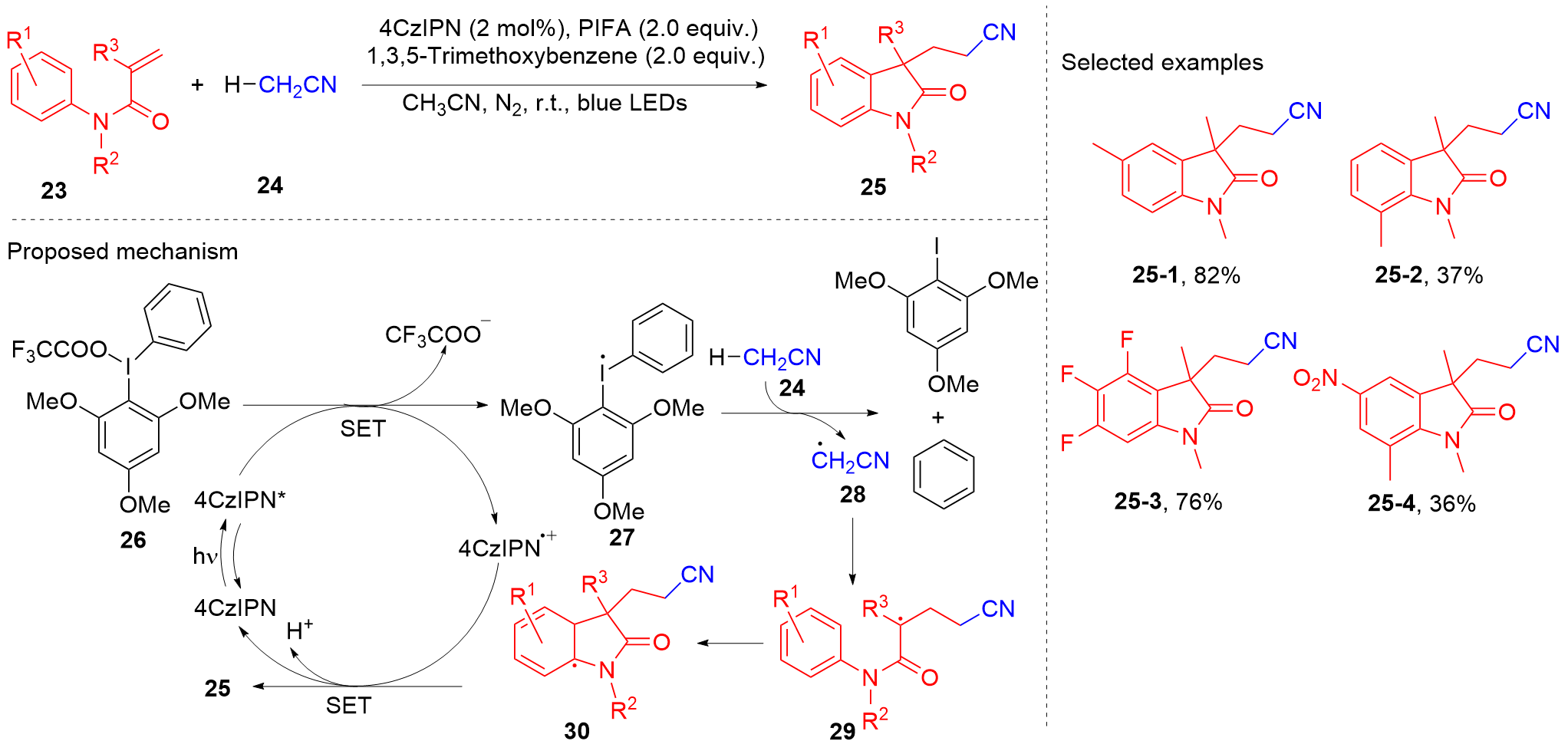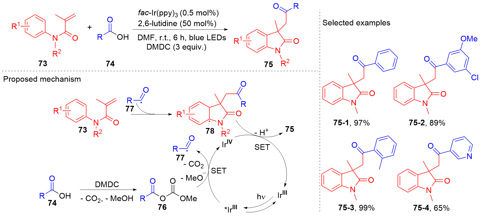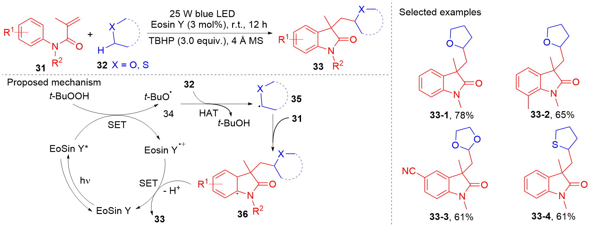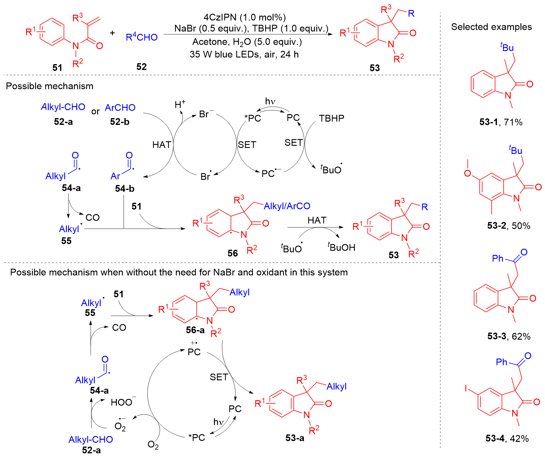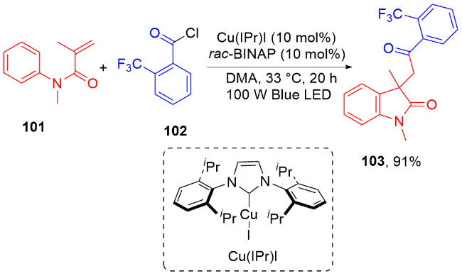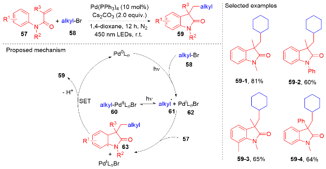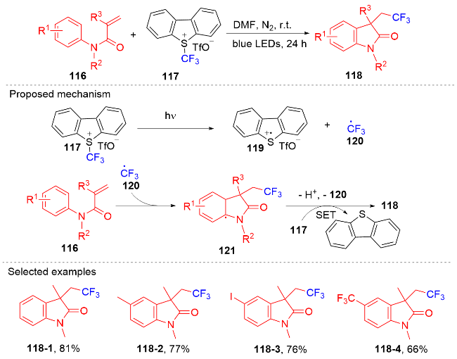 Key words: oxindole; N-arylacrylamide; radical reaction; photocatalysis