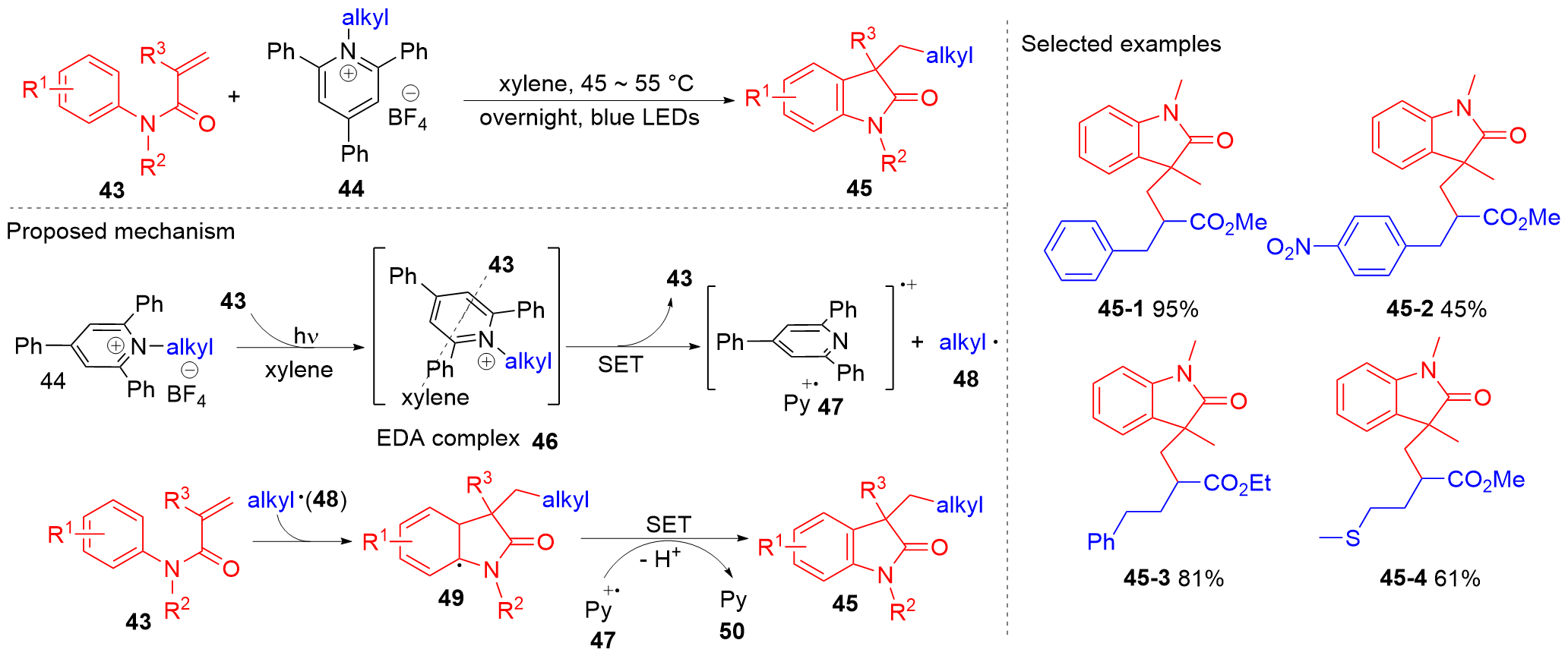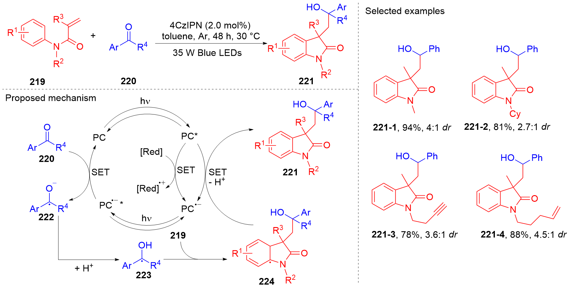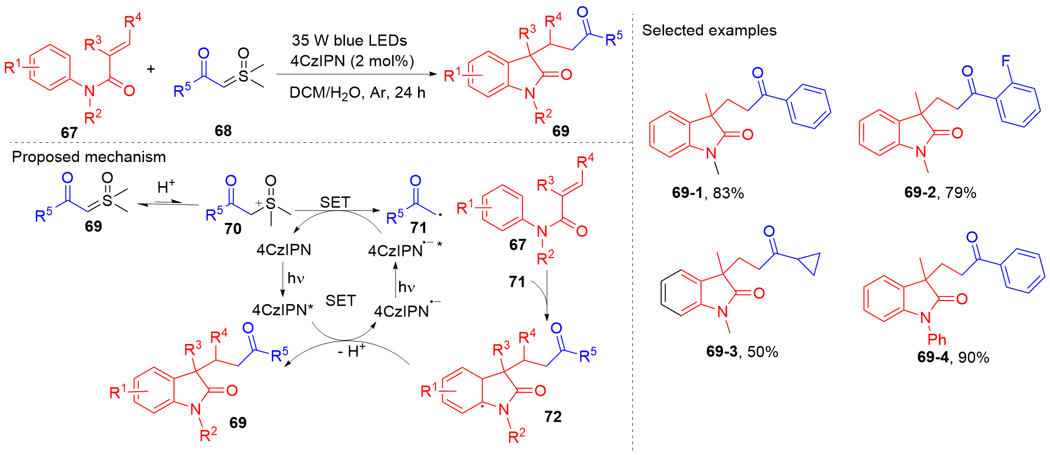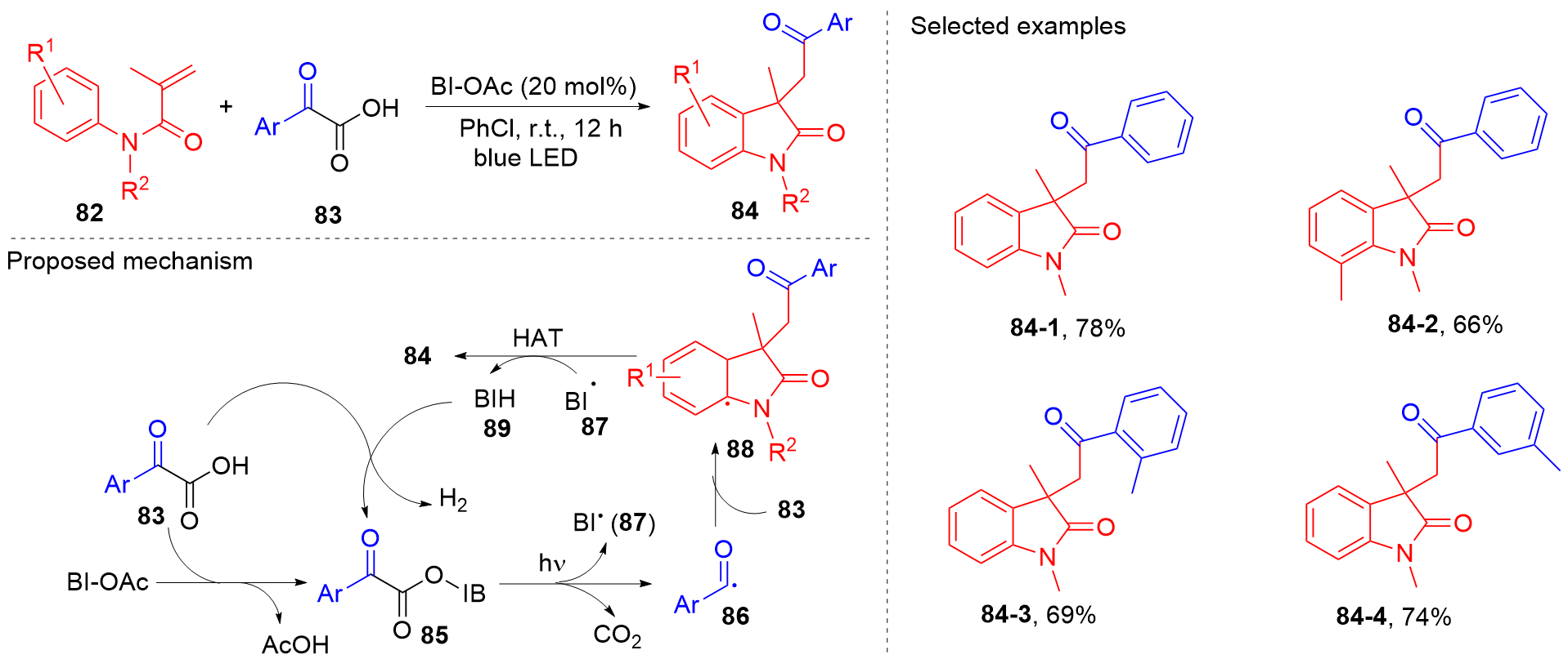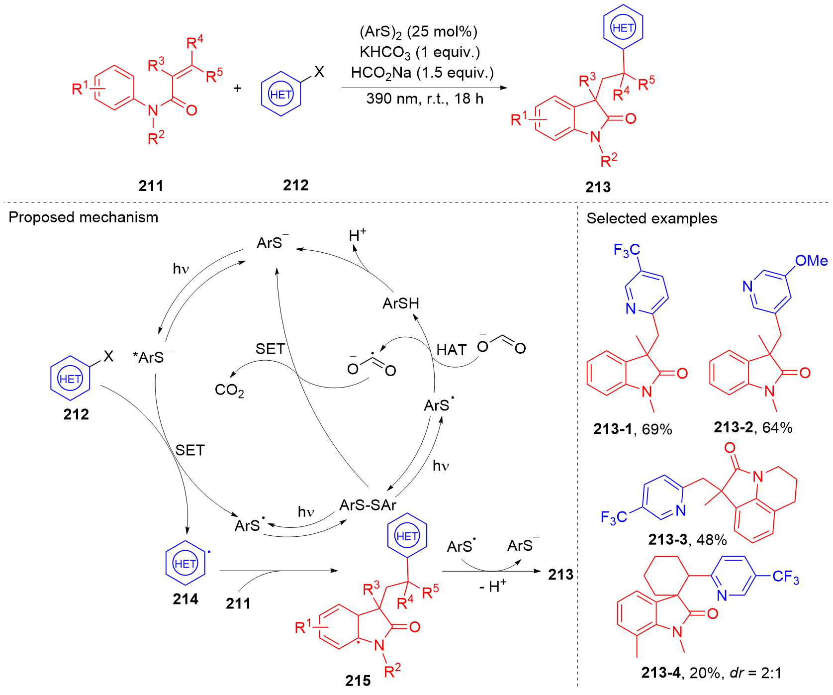 Key words: oxindole; N-arylacrylamide; radical reaction; photocatalysis