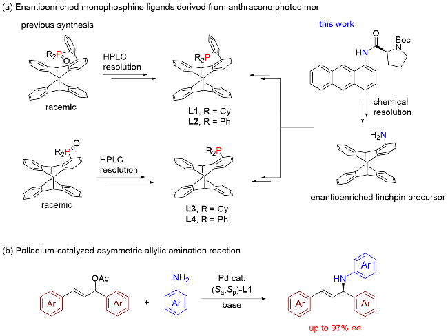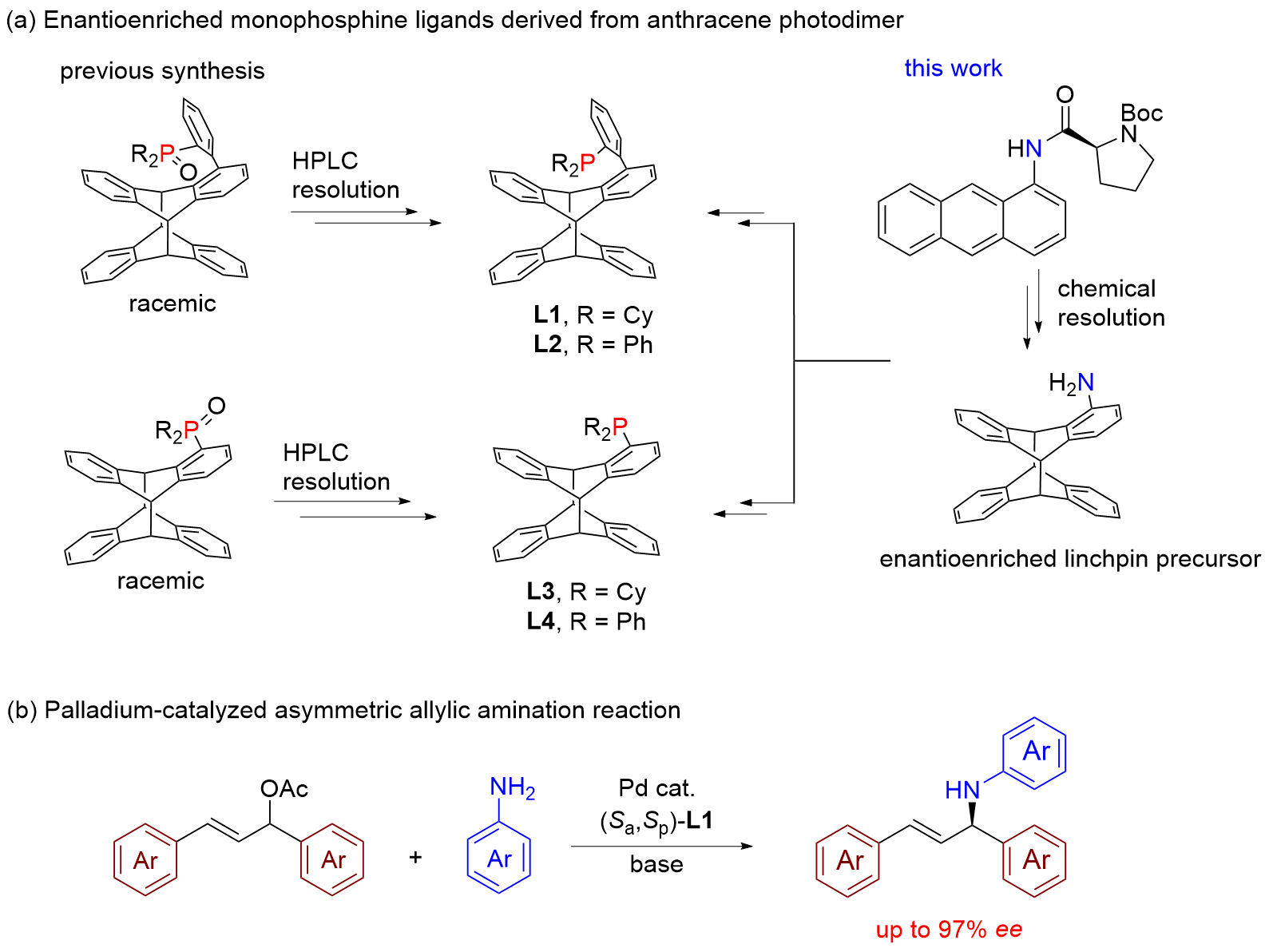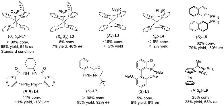 在手套箱中, 向8 mL反应瓶中加入[Pd(η3-C3H5)-Cl]2 (3.4 mg, 0.0092 mmol)和(Sa,Sp)-L1 (13.9 mg, 0.022 mmol), 并将混合物溶解在干燥的乙二醇二甲醚(2.3 mL)中. 将溶液在25 ℃下搅拌15 min, 从而得到8.0 mM的Pd-(Sa,Sp)-L1催化剂储备液.