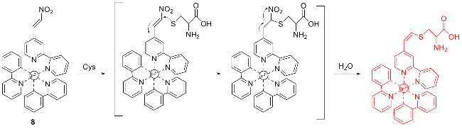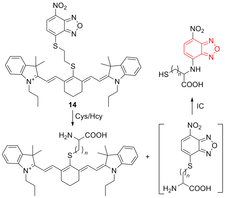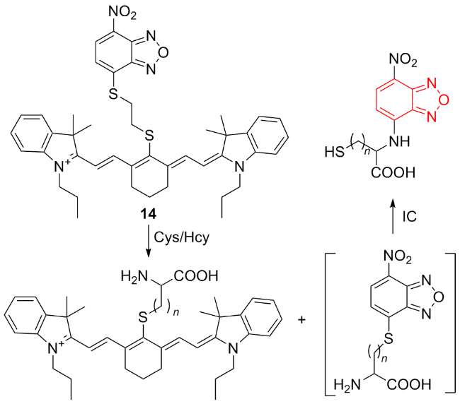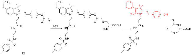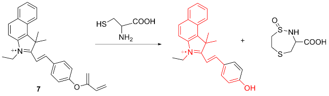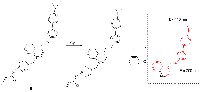 | 6 | Using 2,4-dinitrobenzenesulfonyl group as the response site to react with cysteine | Monitoring Hg2+-induced cysteine fluctuations in living cells | [14] |