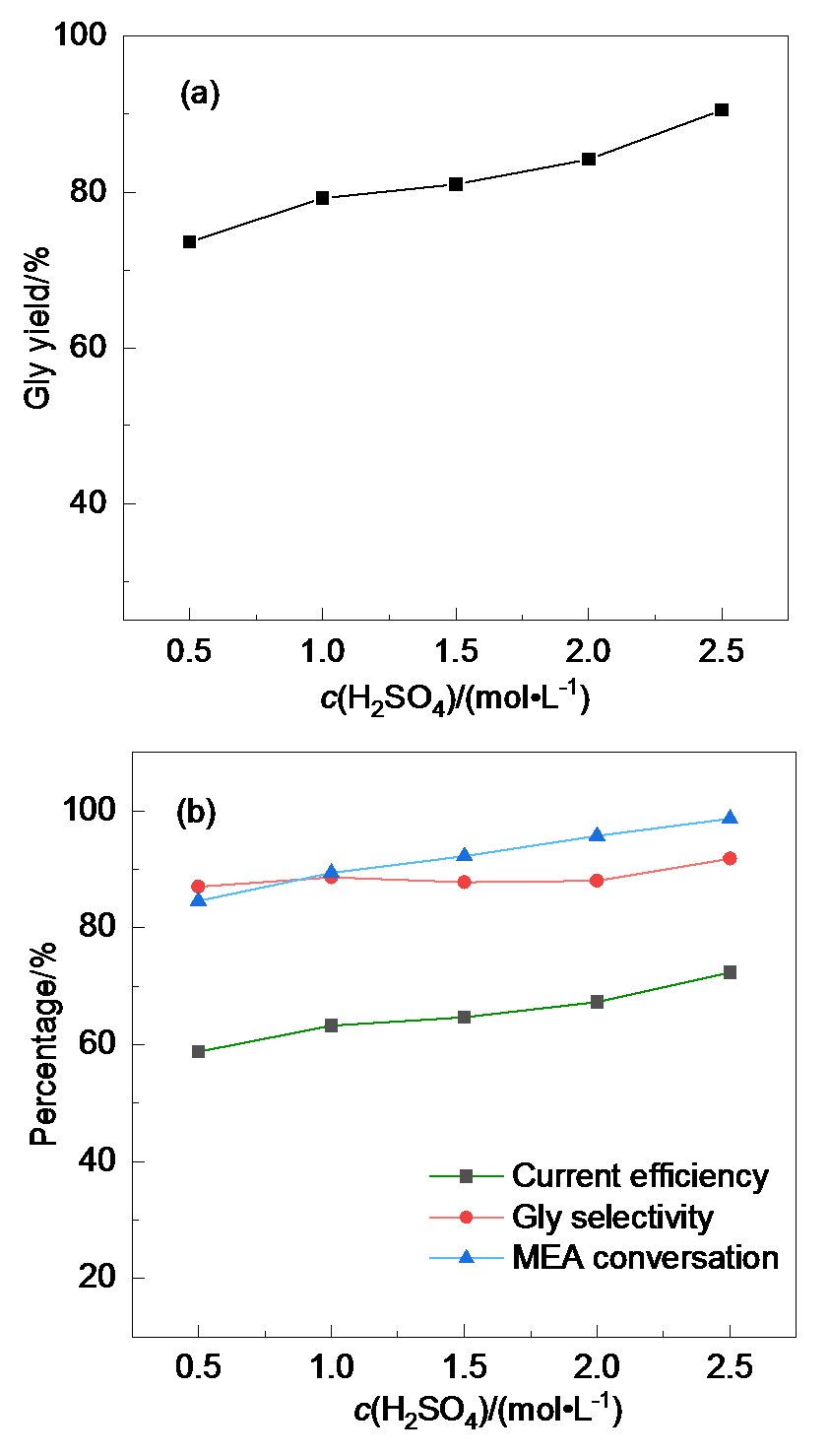 表2 酸、碱环境对MEA电合成Gly的影响Table 2 Effect of acid-base environment on MEA electrosynthesis of Gly |