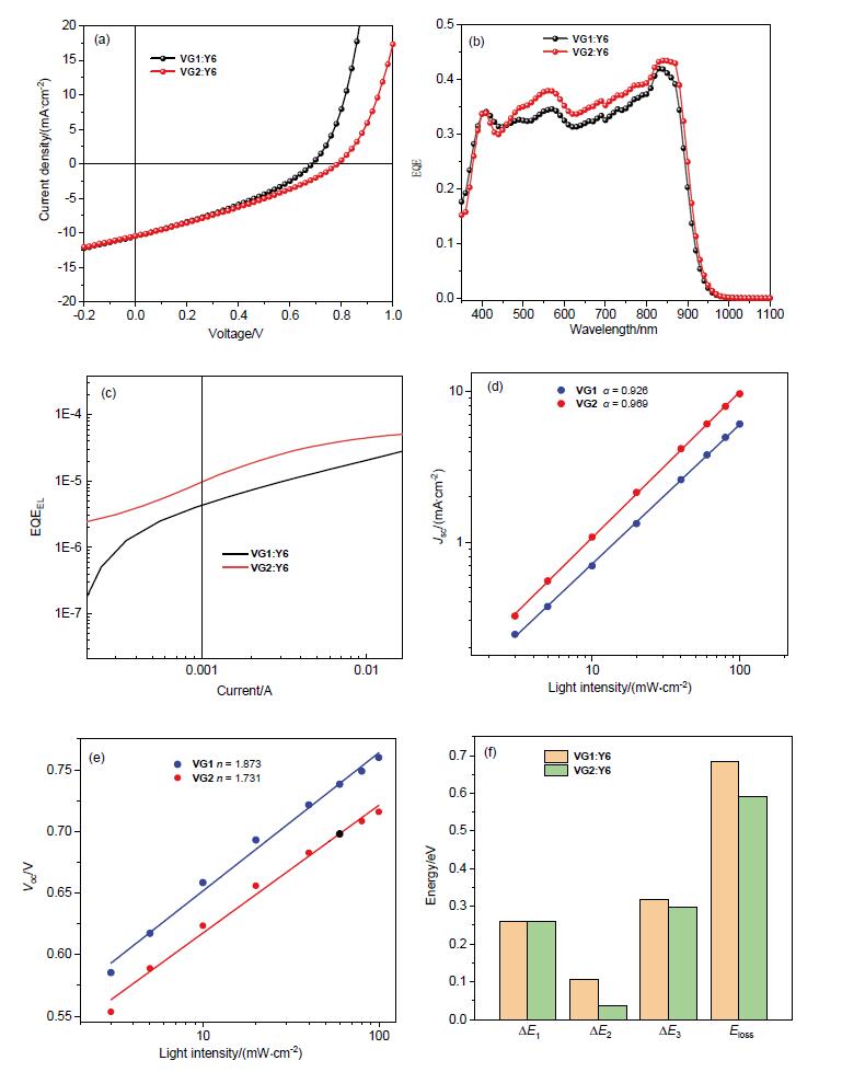| Device | Voc/V | Jsc/(mA•cm-2) | FF/% | PCE/% | Eg/eV | ΔE1/eV | ΔE2/eV | ΔE3/eV | Eloss/eV | EQEEL/% |