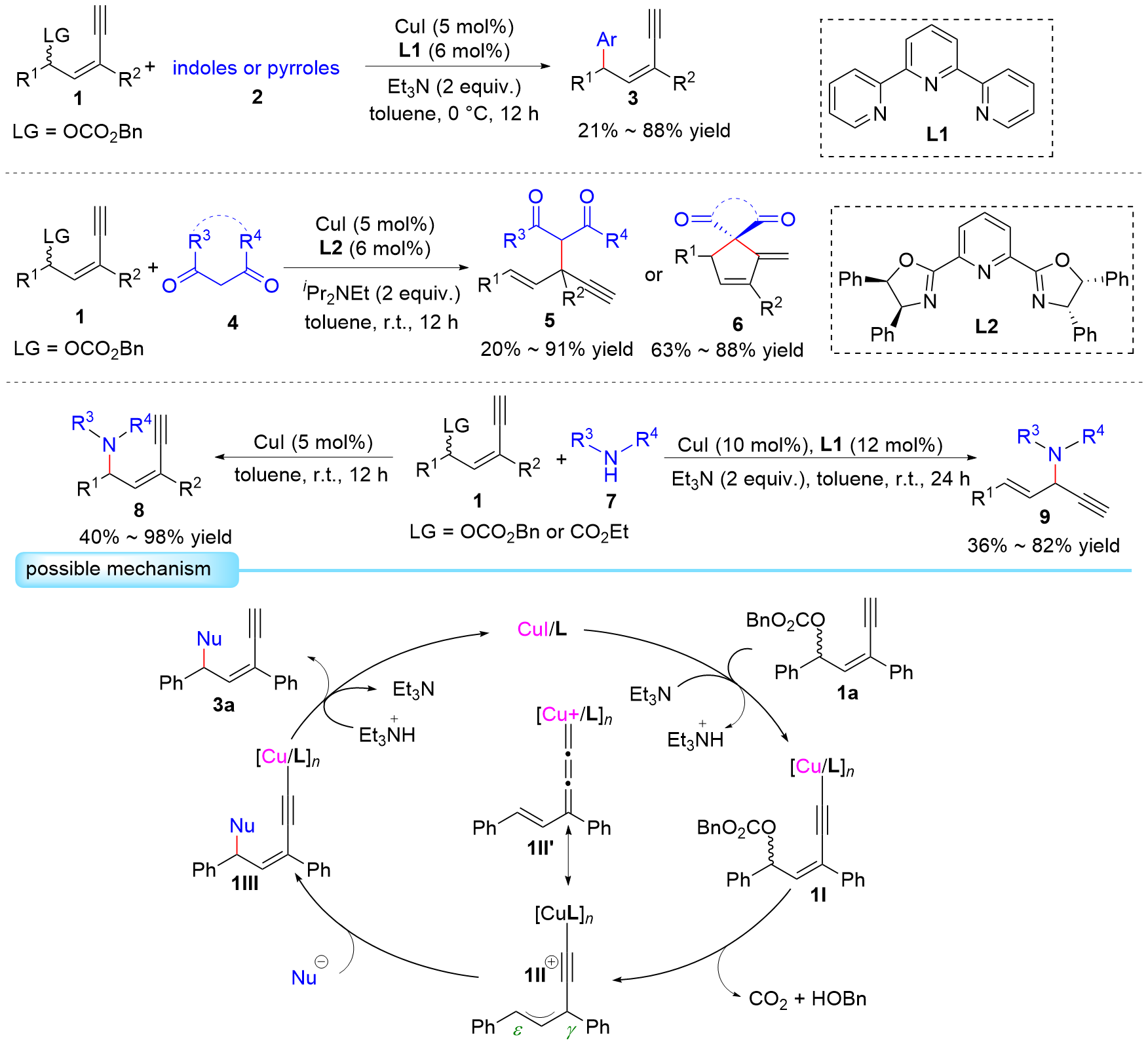 Mengdie Li , Zihan Wang , Taoyan Lin . Recent Progress in Copper-Catalyzed Remote Yne-Allylic Substitution Reaction[J]. Chinese Journal of Organic Chemistry, 2026 , 46(2) : 356 -378 . DOI: 10.6023/cjoc202507019
