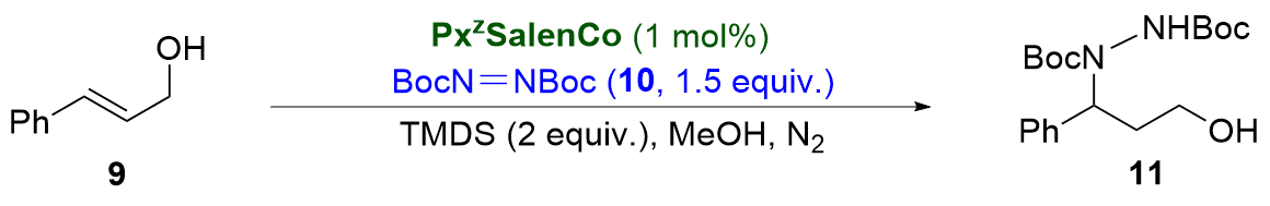 [13] In this context, the catalytic activity of our peptidic Salen cobalt complexes was evaluated with the model reaction of cobalt-catalyzed hydrohydrazination of cinnamic alcohol
