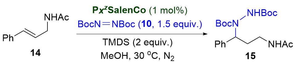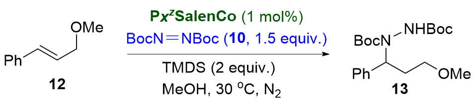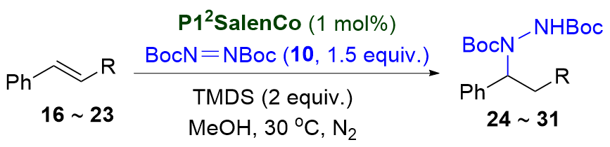 P43SalenCo could catalyze this hydrohydrazination at 30 ℃, affording